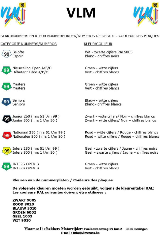 STARTNUMMERS EN KLEUR NUMMERBORDEN/NUMEROS DE DEPART - COULEUR DES PLAQUES